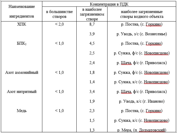 был зарегистрирован случай высокого загрязнения - на реке Постна, с.Горкино 14.10.2025.г амонийным азотом 19,9 мг/м3(49,8 ПДК), 02.10.2025 на реке Шача ф/с г.Приволжск амонийным азотом 5,9 мг/м3 (14,8 ПДК).
